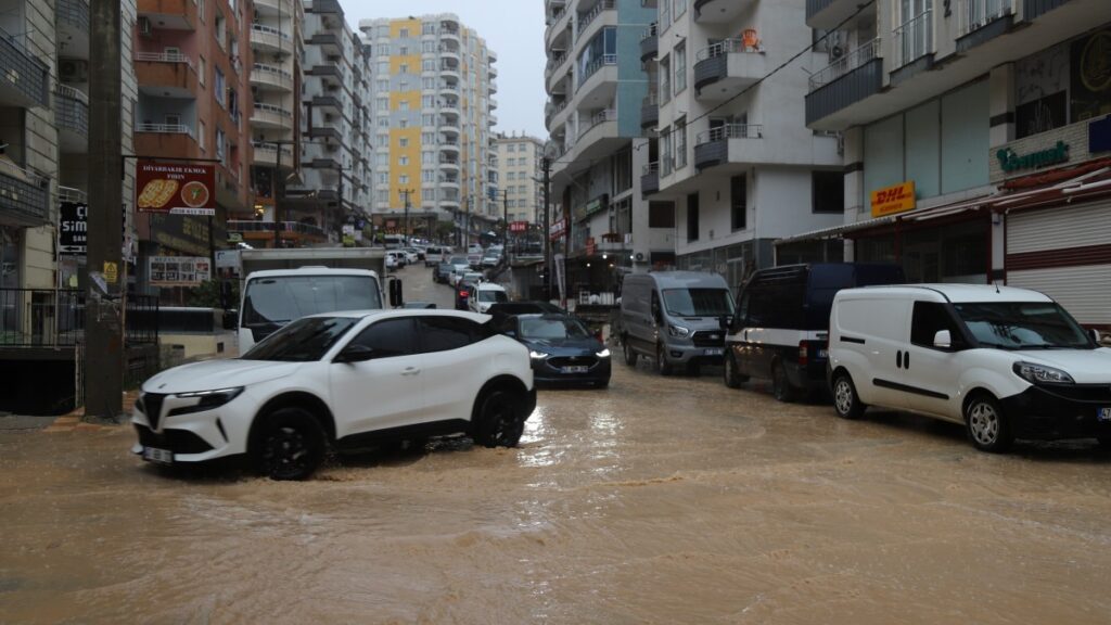 Mêrdîn’de sağanak yağış etkisini dün geceden bu yana sürdürüyor. Artuklu ilçesinde yağışla birlikte yollar göle dönerken, kayyım yönetimindeki Mêrdîn Büyükşehir Belediyesi’nin yarım bıraktığı alt yapı çalışmaları nedeniyle birçok yerde büyük yarıklar oluştu. Araçlar caddelerde ilerlemekte zorluk çekerken, yokuşlu bölgelerde belediyenin çalışma alanlarına bıraktığı mucur, yollara taşarak trafik akışının yavaşlamasına neden oldu.