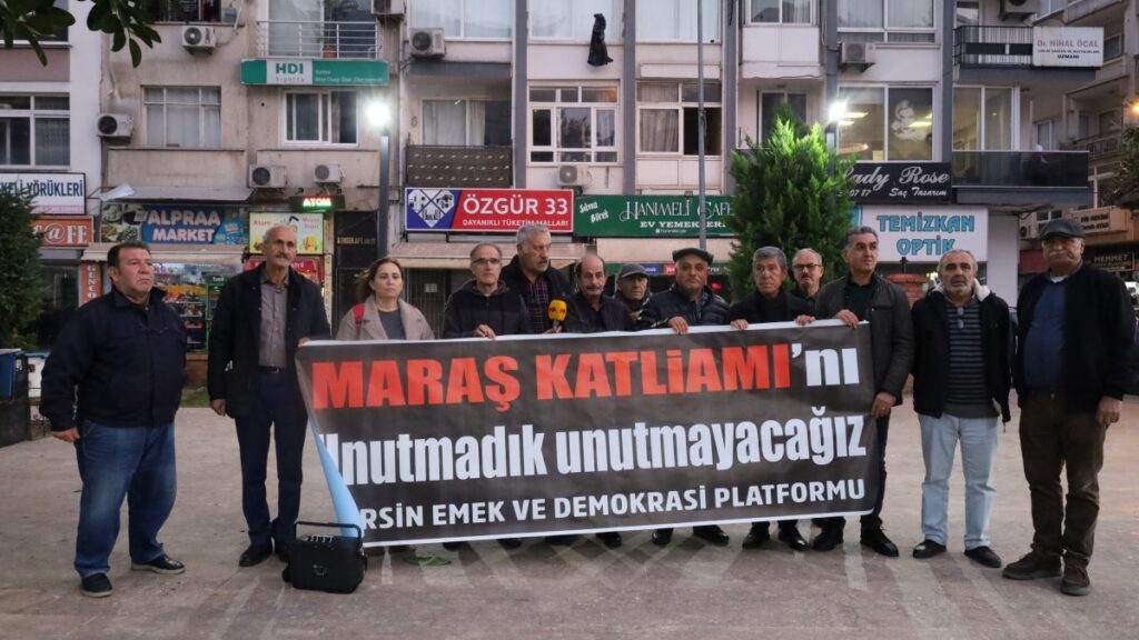 Mersin Emek ve Demokrasi Platformu, Mereş Katliamı’nın 47’nci yılı dolayısıyla Özgür Çocuk Parkı’nda basın açıklaması gerçekleştirdi. Açıklamada, “Maraş Katliamı’nı unutmadık, unutmayacağız” pankartı açıldı.