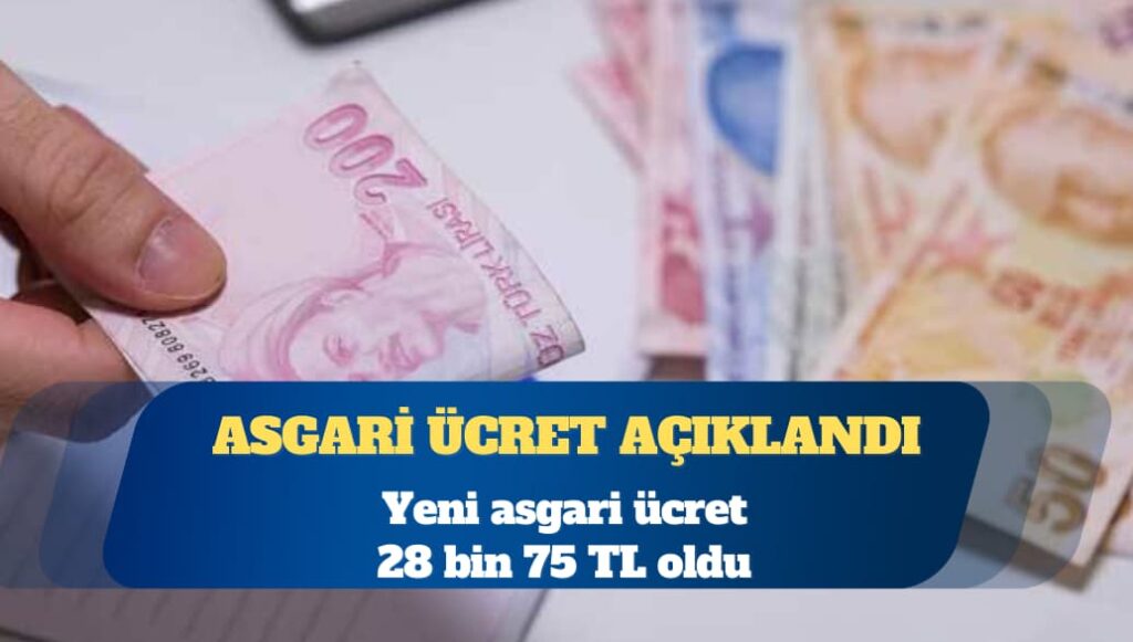 2026 net asgari ücreti yüzde 27 artışla 28 bin 75 TL, brüt 33 bin 30 TL oldu.