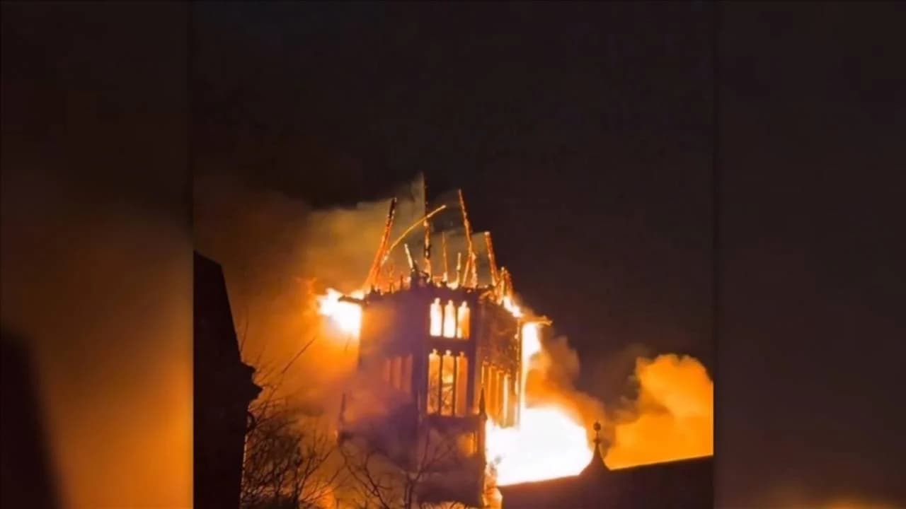 Saat 01.30 sularında çıkan yangında can kaybı yaşanmazken, kilisenin kulesi ve çatısı çöktü.