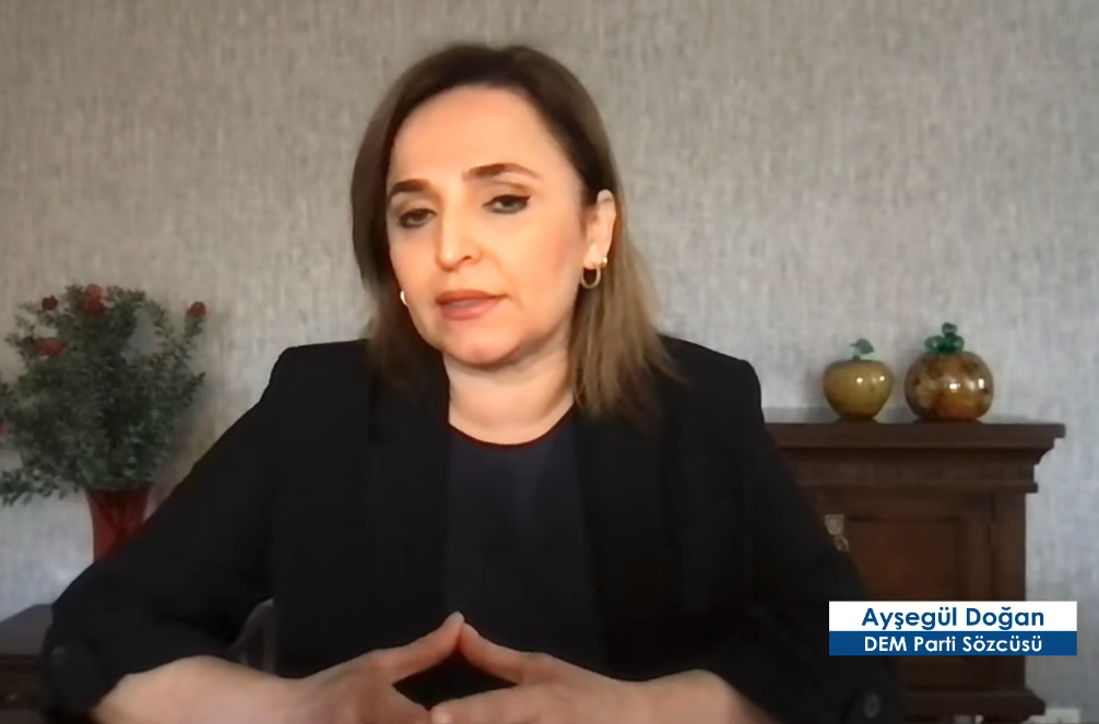 DEM Parti Sözcüsü Ayşegül Doğan, “Terörsüz Türkiye” süreci ve Suriye’de yaşanan gelişmeler üzerine değerlendirmelerde bulundu. MHP lideri Devlet Bahçeli’nin “PKK’nın kurucu önderinin yanında mısınız, yoksa karşısında mısınız?” sorusuna, “Barıştan, demokrasiden yana duruyoruz, savrulmuyoruz. DEM Parti olarak 27 Şubat çağrısının hayata geçmesi için tüm çabayı olağanüstü koşullarda ortaya koymaya çalışıyoruz.” yanıtını verdi.