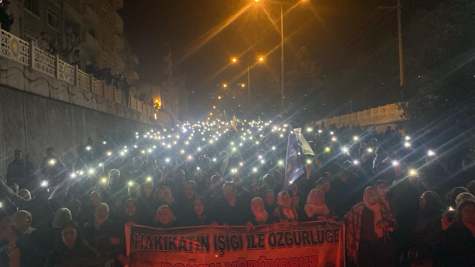 Meşale, fener ve telefon ışıklarının yakıldığı yürüyüşlerde sık sık sloganlar atıldı. Yapılan açıklamalarda komplo kınanırken, Kürt sorununda demokratik çözüm ve Kürt Halk Önderi Abdullah Öcalan’ın özgür çalışma koşullarının sağlanması çağrısı yapıldı.