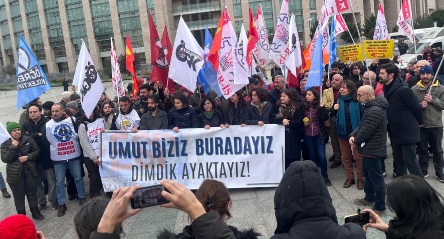 Ezilenlerin Sosyalist Partisi (ESP), Sosyalist Kadın Meclisi (SKM), Sosyalist Gençlik Dernekleri Federasyonu (SGDF), Etkin Haber Ajansı (ETHA), DİSK/Limter-İş, Polen Ekoloji ve BEKSAV’a yönelik gözaltı operasyon, İstanbul Çağlayan’da bulunan adliye önünde protesto edildi.