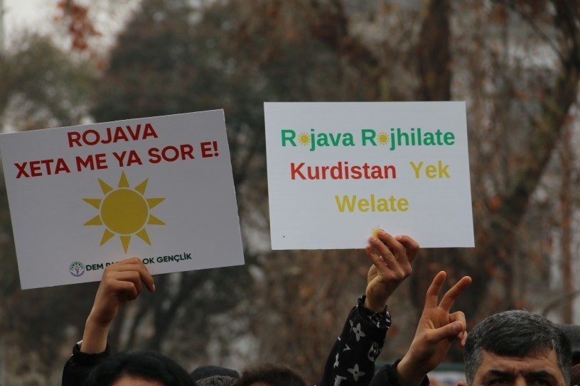 1 Şubat Dünya Rojava’yla Dayanışma Günü dolayısıyla Amed’de düzenlenen yürüyüşte ise Abdullah Öcalan özgür olmadan ne Kürt halkı ne Rojava ne de hakların özgür olamayacağını belirten yurttaşlar, “Sayın Öcalan barışın kilididir, barışın kilidi içerde tutulduğu sürece barış gelmez” dedi.