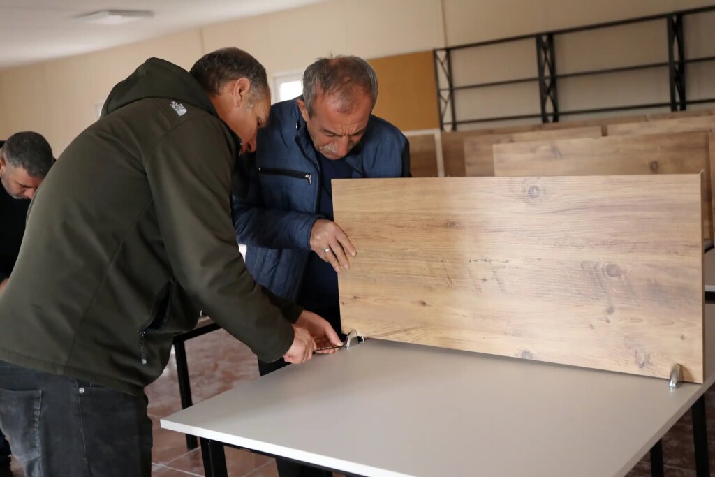 Şilbe (Yolaltı) Mahallesi’nde yakın zamanda tamamlanması planlanan ve yüzlerce genç, kadın ile çocuğa hizmet verecek Halk Kütüphanesi’nde kullanılacak kitaplık, çalışma masası ve çatılı piknik masaları belediyenin kendi atölyesinde üretildi; montaj çalışmalarına başlandı.