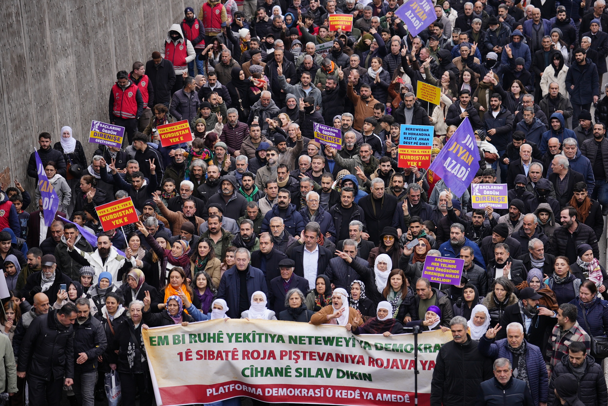 1 Şubat Dünya Rojava’yla Dayanışma Günü dolayısıyla Kürdistan ve Türkiye’nin birçok kentinde sokağa çıkan halk, çeşitli eylem ve yürüyüşler gerçekleştirdi. Bu kapsamda Amed’de yürüyüş gerçekleştiren on binler, Rojava’yı savunmaktan vazgeçmeyeceğinin mesajını verdi.