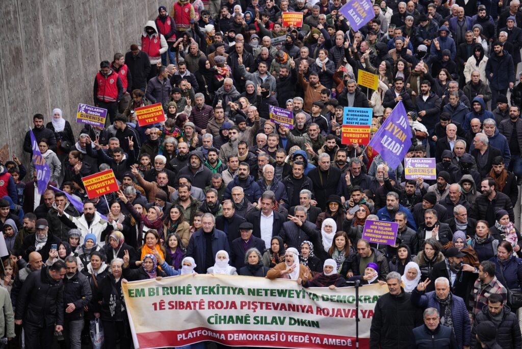 Amed’de sokağa çıkan on binler, Kürtlerin hakları güvenceye alınmadan sokaklardan ayrılmayacaklarını kaydetti