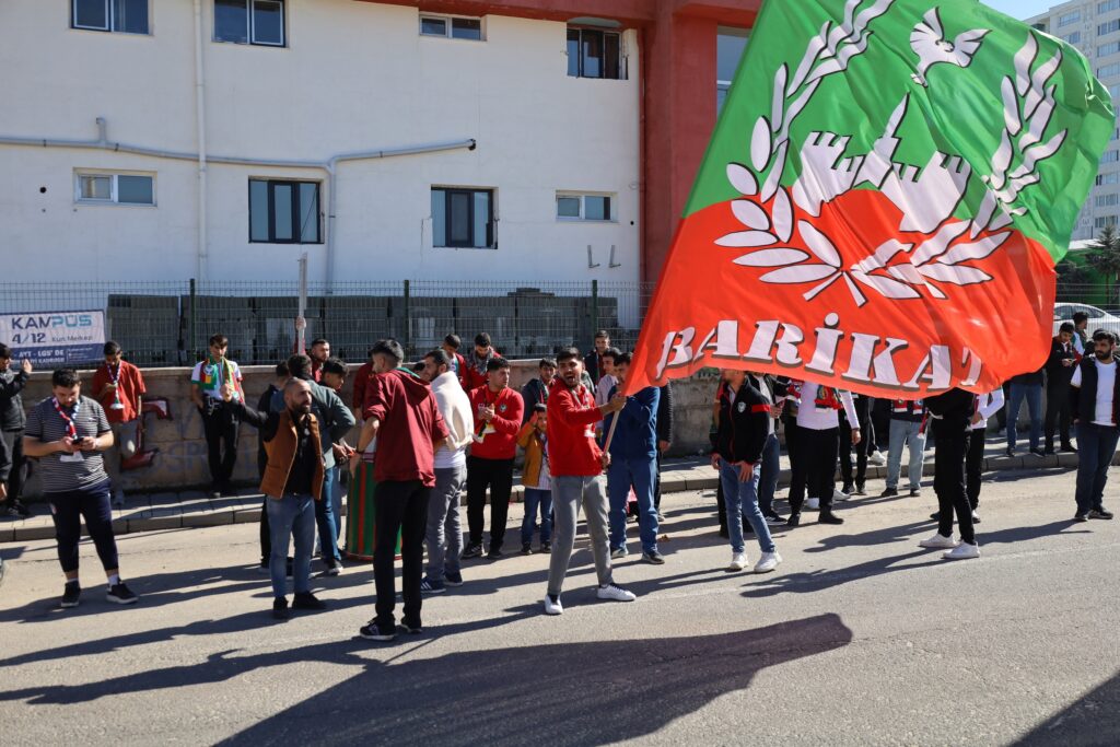 Trendyol 1. Lig lideri Amedspor, saat 16.00’da Tahir Elçi Stadyumu’nda Sakaryaspor’u konuk edecek. Maç öncesi Şehmus Özer Tesisleri önünde bir araya gelen taraftarlar, takıma destek mesajı verdi. Kürdistan ve Türkiye’nin birçok kentinden Amedspor’a destek için gelen taraftarlar hedeflerinin Süper Lig olduğunu belirterek, takımlarına gereken tüm desteği vereceklerini, “Takımımızın 12’nci oyuncusu olacağız” diyerek ifade etti.