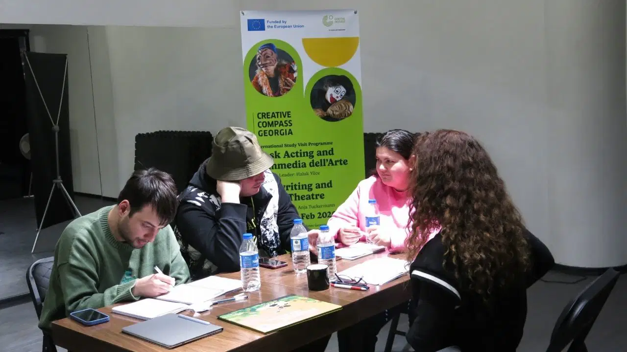 Tiyatro Tempo ve Kukla Karagöz Gösteri ve Sahne Sanatları Derneği (KUKSADER), 28 Ocak – 06 Şubat tarihleri arasında, Gürcistan’dan gelen yazar ve oyuncuları bir atölyede buluşturdu. Proje, Creative Compass Georgia projesinin bileşenlerinden biri olan “Uluslararası Çalışma Ziyareti Programı” kapsamında gerçekleştirildi. 10 gün süren atölye programı, katılımcıların sanatsal pratiklerini geliştirmelerine olanak sağlarken, aynı zamanda kültürler arası yaratıcı bir paylaşım ortamı deneyimlemelerini mümkün kıldı. Avrupa Birliği tarafından finanse edilmekte olan Creative Compass Georgia programı kapsamındaki bu atölye çalışmaları Gürcistan Goethe Enstitüsü’nün projeye eş finansman sağlamasıyla KUKSADER ve Tiyatro Tempo tarafından uygulamalı olarak yaşama geçirildi.
