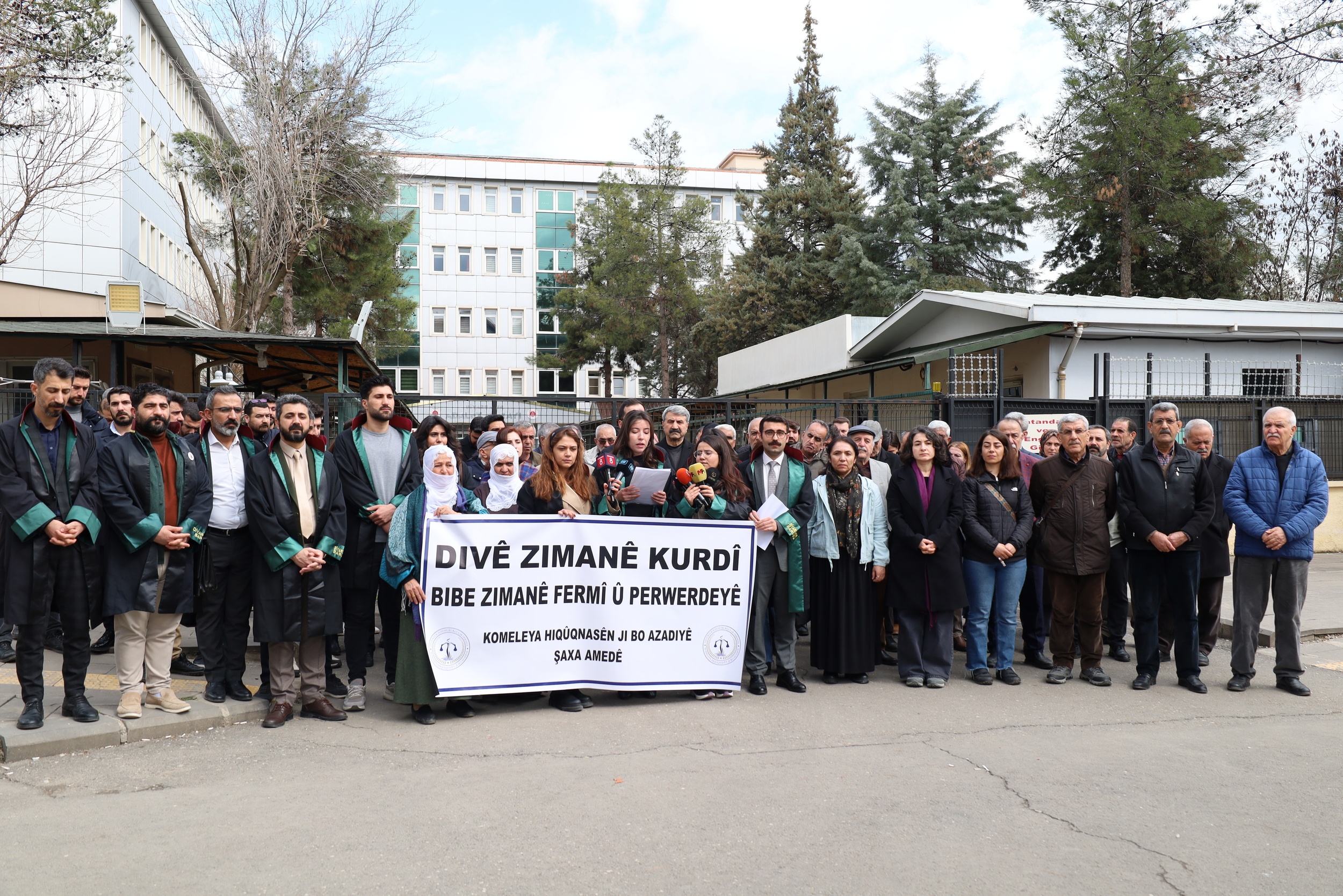 ÖHD Amed Şubesi, Diyarbakır Adliyesi önünde açıklama yaptı. Açıklamada, “Dîvê zımanê kurdî bibe zimane fermî û perwerdeyê” pankartı açıldı. Hukukçuların yanı sıra siyasi parti ile sivil toplum örgütlerinin temsilcisinin katıldığı açıklamanın Kürtçenin Kurmanci lehçesinde olanını ÖHD Amed Şubesi Dil Komisyonu Eşsözcüsü Gülbahar Ateş, Kirmançkî lehçesinde olanını ise diğer Eşsözücü Mehmet Emin Gökdemir yaptı.