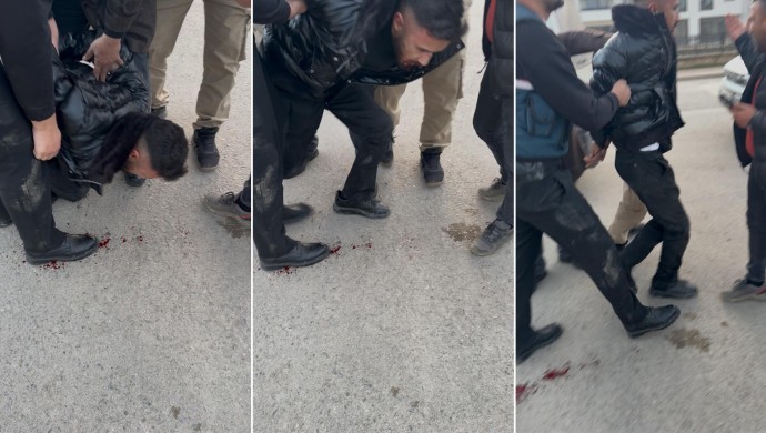 Mezopotamya Ajansı’nın ulaştığı görüntülerde Maaz Buğday’ın ağzından ve burnundan kan aktığı, 3 sivil jandarmanın onu yere yatırarak ters kelepçeyle gözaltına aldığı görülüyor. Yerde kan olduğu fark edilirken, etraftaki yurttaşların yaşananları kayda aldığı öğrenildi. Sivil jandarmaların ise yurttaşlara seslenerek, “Çek çek, sıkıntı yok” dediği duyuluyor. Maaz Buğday, daha sonra araca bindirilerek götürülüyor.