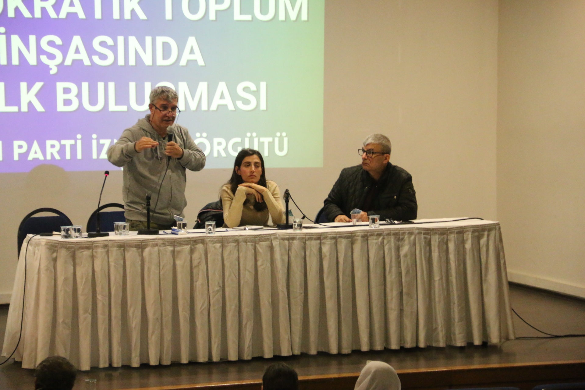 Halkların Eşitlik ve Demokrasi Partisi (DEM Parti) İzmir İl Örgütü, Tepekule Kongre Merkezi’nde “Barış ve Demokratik Toplum İnşasında Halk Buluşması” düzenledi. Buluşmaya Veysi Aktaş ve yerine kayyım atanan Êlih Eşbaşkanı Gülistan Sönük konuşmacı olarak katıldı.