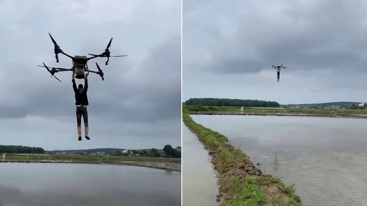 Çeltik tarlasında bir garip yolculuk: Drona asılıp uçtuhttps://t.co/V6rkVl2Wwn pic.twitter.com/2INupQ8srO