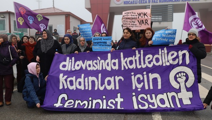 Kocaeli Dilovası’nda Ravive Kozmetik fabrikasında çıkan yangında 7 işçinin hayatını kaybetmesi, 6 işçinin de yaralanmasına dair görülen davanın ilk duruşması ikinci gününde sürüyor. Kandıra Ceza İnfaz Kurumu Yerleşkesi’ndeki duruşma öncesinde kadınlar, basın açıklaması gerçekleştirdi.