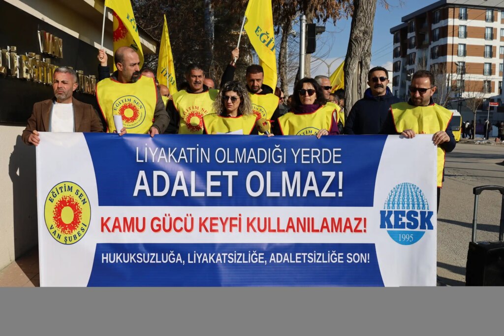 Eğitim Sen Wan Şubesi, Wan’da İpekyolu İlçe Milli Eğitim Müdürlüğü’nün uygulamalarına tepki göstererek İl Milli Eğitim Müdürlüğü önünde açıklama yaptı. Sendika, 85 öğretmeni hedef alan isimsiz bir belge üzerinden yürütülen sürecin hukuka ve eğitim ilkelerine aykırı olduğunu belirterek yetkilileri göreve çağırdı