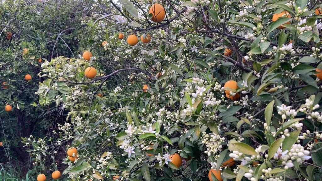 Bir çok narenciye ürününde olduğu gibi portakalda da hasat sonu yaklaştı. Geç meyve verenlerin son hasatlarının yapıldığı bugünlerde ağaçlarda yeniden çiçekler açmaya başladı. Meyvesi dalında olan ağaçların da çiçekler açmasıyla çevreye güzel kokular yayılmaya başladı. Arıların polen topladığı çiçekler, görsel güzellik de oluşturdu.
