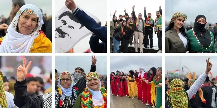 Alanda Kürt Halk Önderi Abdullah Öcalan’ın mesajı büyük bir ilgiyle takip edilirken, alanda Abdullah Öcalan’ın fotoğrafları taşındı.