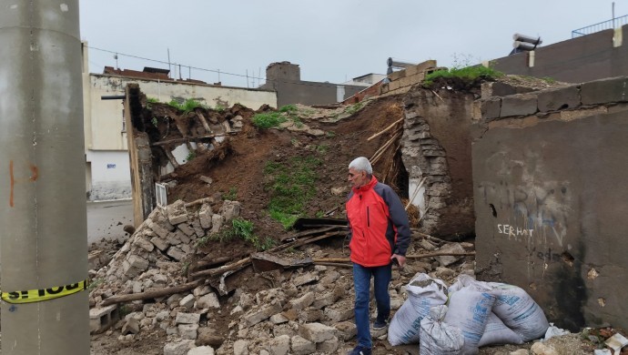 Mêrdîn’de etkisini sürdüren sağanak yağış nedeniyle iki evde çökme meydana geldi