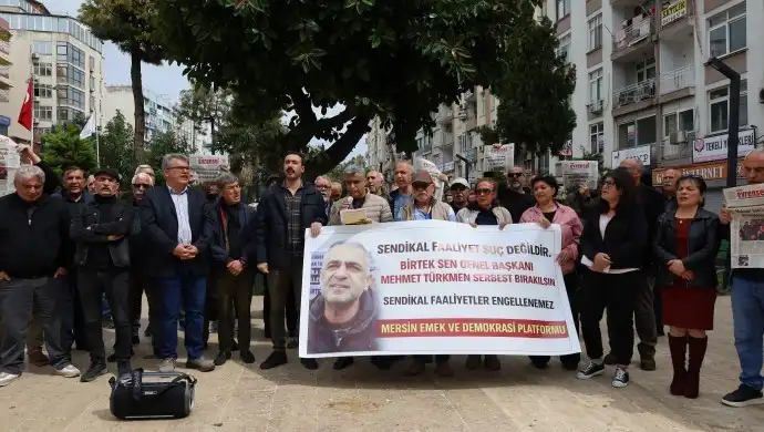 Mersin Emek ve Demokrasi Platformu, BİRTEK-SEN Genel Başkanı Mehmet Türkmen’in tutuklanmasına tepki göstererek, ‘İktidarı demokrasi ve hukuka aykırı bu uygulamasından bir an önce vazgeçme çağrısı yapıyoruz’ dedi