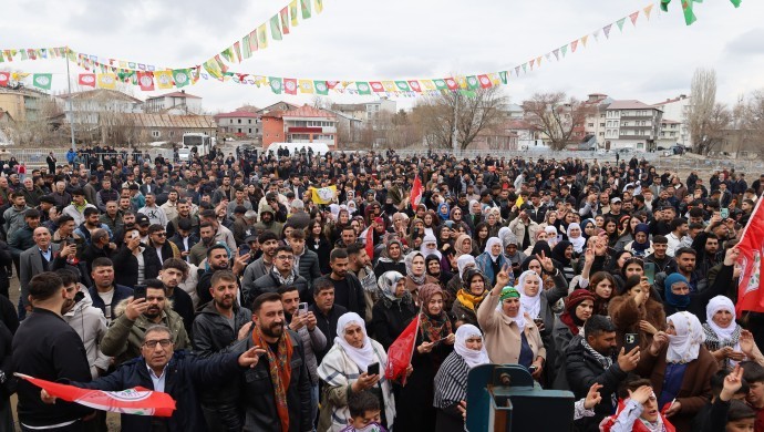 Mûş’un Milazgir (Malazgirt) ilçesi Eski Kasaplar Meydanı’nda “Özgürlük ve Demokrasi Newrozu / Newroza Azadî Yekîtî û Demokratîk” şiarıyla Newroz kutlandı. Sık sık “Bijî berxwedana Rojava”,” “Bijî Serok Apo” sloganları atılırken, kitle coşkulu bir şekilde halaya durdu. Kutlamada konuşan Milazgir Belediye Eşbaşkanı Ahmet Kenan Kenan Türker, halkın özgürlük özlemiyle Newroz alanlarını doldurduğunu belirterek, savaş ve çatışmaların son bulmasını temenni etti. Barış ve Demokratik Toplum Süreci’ne işaret eden Kenan Türker, “Barış için çaba sarf eden, barışa ve özgürlüğe emek veren bütün herkese teşekkür eder, Newrozlarını kutlarım. Üstat Yaşar Kemal ‘Bir bahçede hep aynı çiçekten olursa, o bahçe güzel olmaz” demiş. Evren bir halklar bahçesidir. Farklılıklarımız düşmanlığımız değil, en büyük zenginliğimizdir. Kürtler de evrendeki bahçenin en güzel çiçeklerinden biridir. Solmasın bu çiçekler” ifadelerini kullandı.