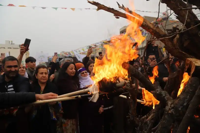Konusmların ardından Newroz ateşi gençlerin ve kadınların öncülüğünde yakıldı. Newroz ateşinin yakılması ile beraber alanda coşku doruğa çıktı. Kitle hep bir ağızdan “Newroz Pîroz be” sloganı attı.