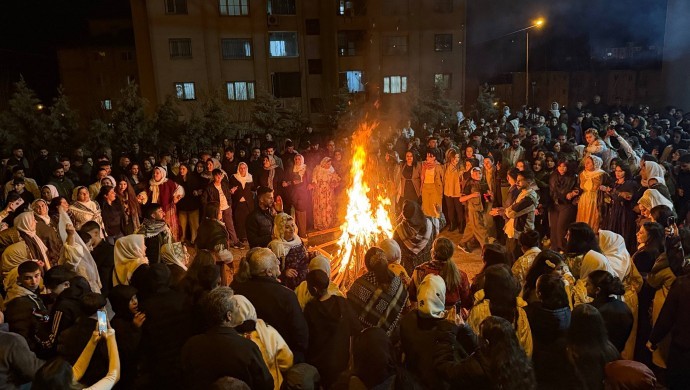 Şirnex merkez Vakıfkent Mahallesi’nde Newroz ateşi, kadınların taşıdığı meşaleler ile barış talebiyle harlandı