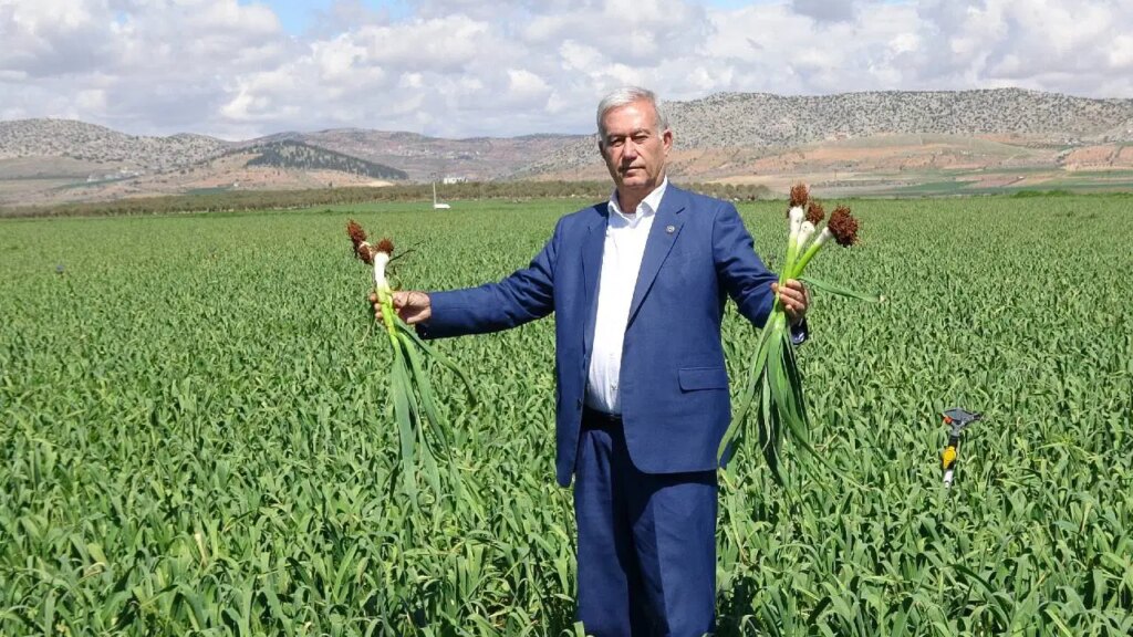 30 bin dönüm arazi üzerine ekili sarımsak bulunduğunu ve rekoltenin beklenenin üstünde olacağını söyleyen Altun, “Hasadımız yaklaştı. 1 ay sonra yeşil sarımsak hasadı yapacağız. Mayısın 15’inde de normal sofralık sarımsak hasadına başlayacağız. Dolayısıyla hem sevinçliyiz hem de mutluyuz. Bu sene hasadın bol olmasını bekliyoruz ve her yere sarımsak göndereceğiz. Bu sene 30 bin dönüm arazi üzerine ekili sarımsağımız var. Rekoltemiz yüksek olacak” dedi.