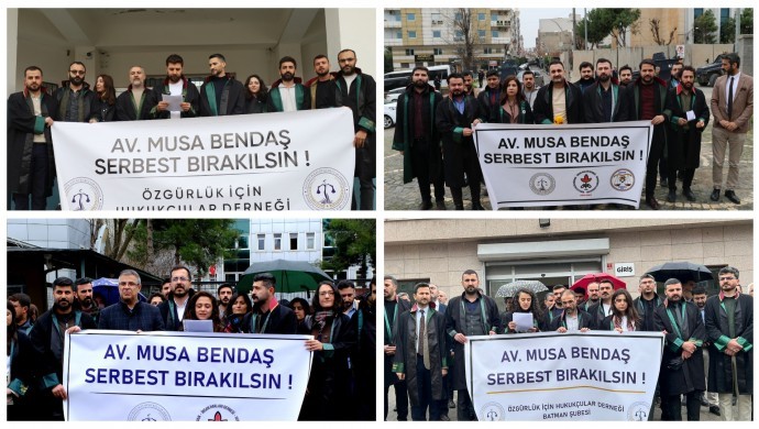 Avukatların düşüncelerini ifade etmeleri veya toplumsal meseleler hakkında görüş açıklamaları nedeniyle baskı altına alınmaları savunma hakkının kurumsal varlığına yönelik bir müdahaledir. Bu çerçevede ÖHD üyesi Kürt avukat Musa Bendaş’ın bir protesto yürüyüşü gerekçe gösterilerek tutuklanması kabul edilemez. ÖHD ve İHD’nin özellikle Kürt illerinde yaşanan hak ihlallerine karşı yürüttüğü hukuki mücadele sürecinde birçok avukat soruşturma, gözaltı ve tutuklamalarla karşı karşıya bırakılmıştır. Musa Bendaş’ın tutukluluğu da bu baskı politikalarının yeni bir örneğidir. Savunmaya ilişkin her türlü müdahale hukuk devleti ilkesinin yok sayılışının tezahürü olmakla birlikte, yargı makamlarının baskı rejimine kılıf haline getirildiğinin de ispatı niteliğindedir.”