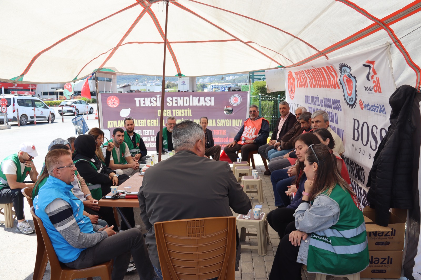 Halkların Eşitlik ve Demokrasi Partisi (DEM Parti) İzmir İl Örgütü ve Halkların Demokratik Kongresi (HDK) İzmir Meclisleri, 1 Mayıs ziyaretleri kapsamında sendikalaştıkları için işten çıkarılan Digel Tekstil Fabrikası ve Temel Conta işçilerini ziyaret etti.