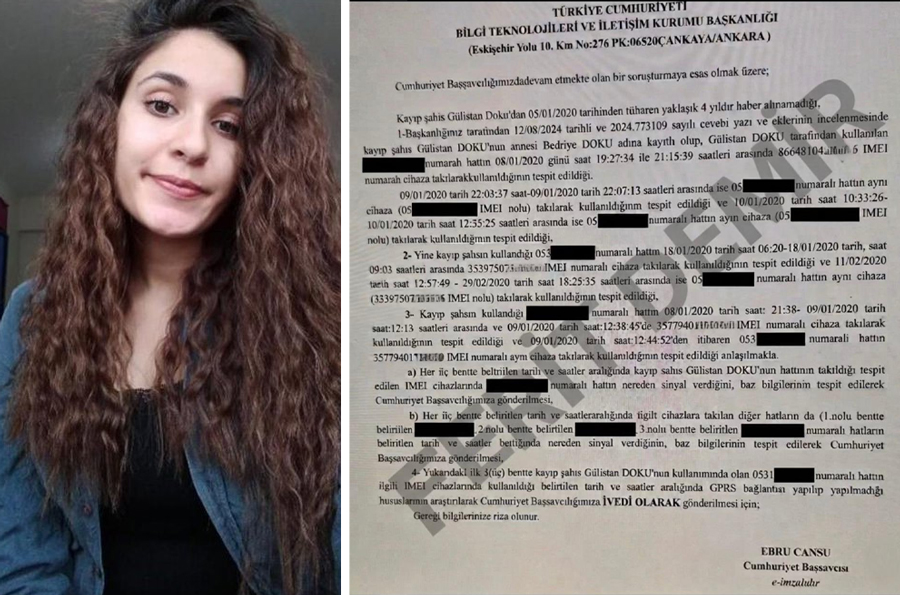 Dolaşıma giren ve Tunceli Cumhuriyet Başsavcılığı adına BTK’ya yazıldığı görülen resmi yazı ise bu iddiaların dayandığı teknik hattı gösteriyor. Belgede, Gülistan Doku’nun annesi Bedriye Doku adına kayıtlı olup Gülistan Doku tarafından kullanıldığı belirtilen hattın 8 Ocak, 9 Ocak, 10 Ocak, 18 Ocak ve Şubat 2020’de farklı IMEI numaralı cihazlara takılarak kullanıldığının tespit edildiği aktarılıyor. Başsavcılık, bu cihazların hangi bazlardan sinyal verdiğinin, aynı cihazlara takılan diğer hatların nereden bağlantı kurduğunun ve ilgili zaman aralıklarında GPRS/veri bağlantısı yapılıp yapılmadığının ivedilikle belirlenmesini istiyor.