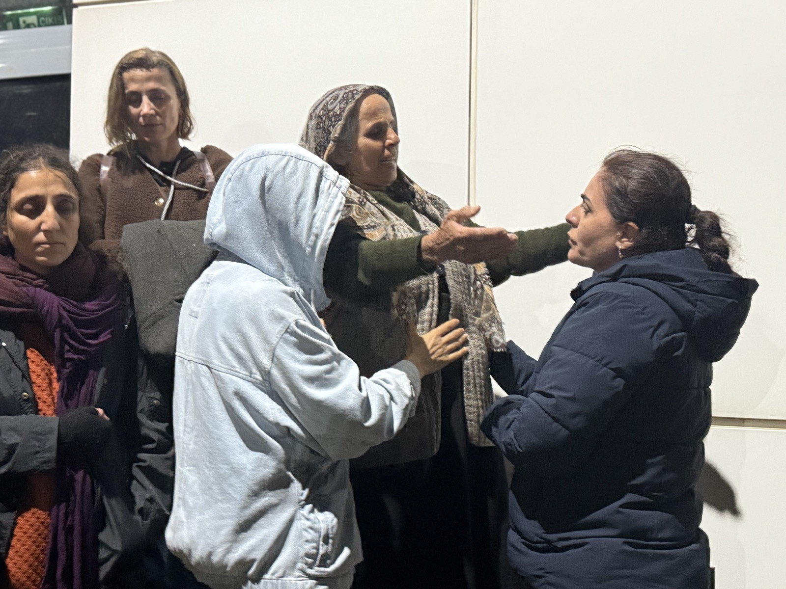 Gözaltındaki iki kişi adliyeye getirilirken, “Katiller, yatacak yeriniz yok”, “Katil baban seni koruyamayacak” ve “Katil Tuncay” diyerek tepki gösterdiler.