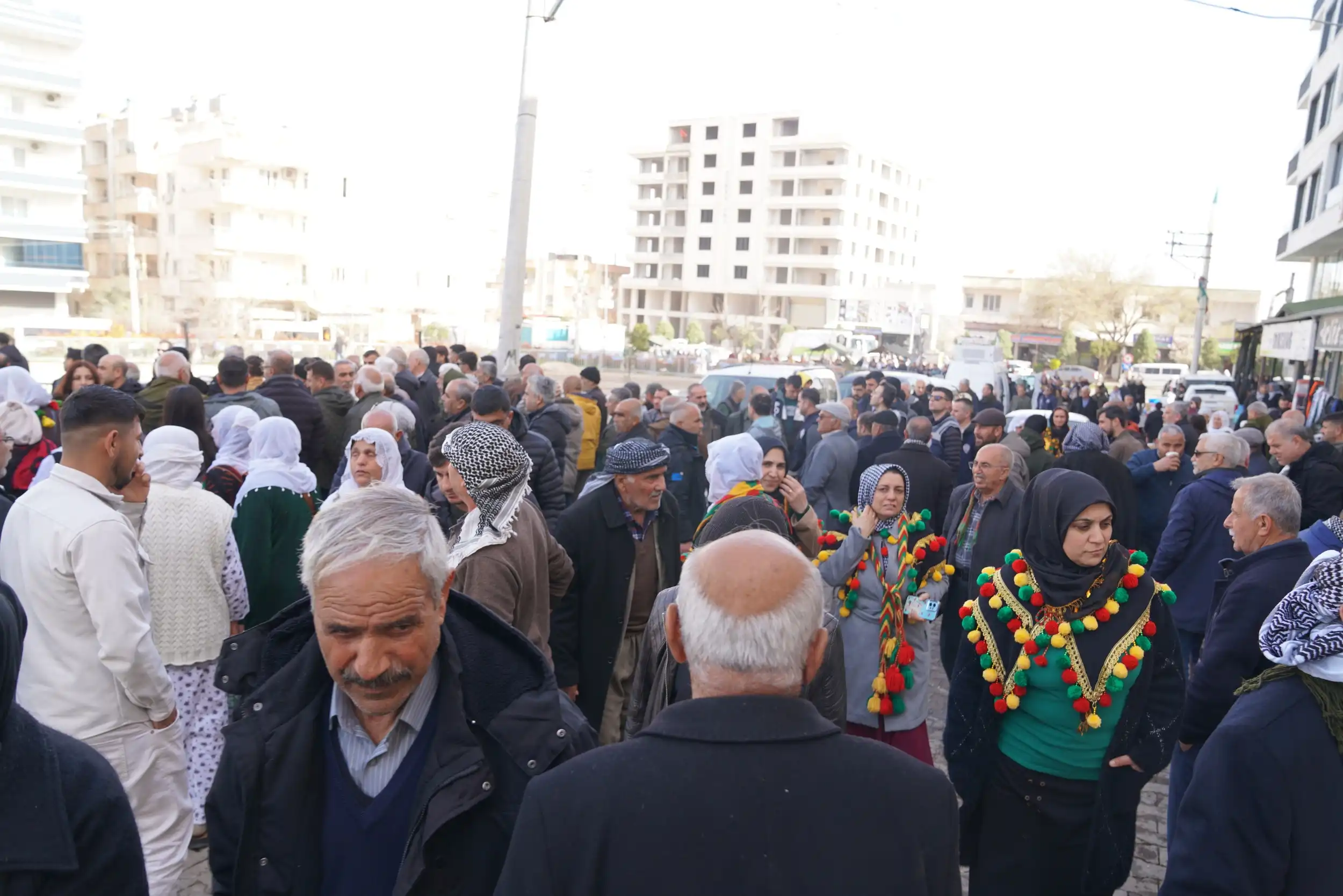 Yürüyüş için 4 Nisan Parkı’nda toplanan kitle, “Bijî Serok Apo”, “Rojbûna te pîroz be ey Serok Apo”, “Gençlik Apo’nun fedaisidir” sloganlarını atarak harekete geçmeye hazırlanıyor.
