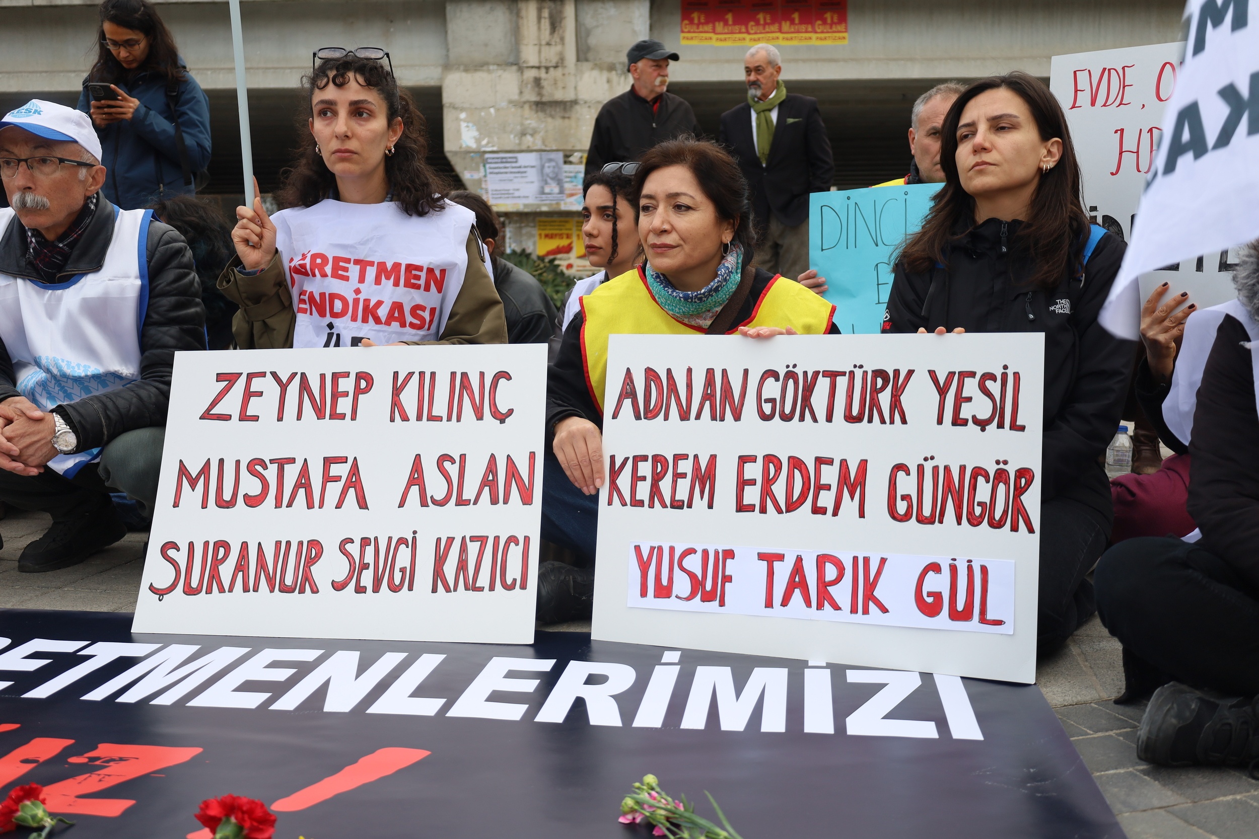 Kamu Emekçileri Sendikaları Konfederasyonu (KESK) İstanbul Şubeler Platformu tarafından, Mereş ve Riha’daki okullarda yaşanan saldırılara tepki göstermek amacıyla İstanbul Kartal Neyzen Tevfik Meydanı’nda Yaşam Nöbeti tuttu. Nöbette, “Tarikatin bakanı Yusuf Çetin istifa”, “Sermayeye değil eğitime bütçe” sloganları atıldı. “Katledilen öğrenci ve öğretmenlerimizi unutmayacağız” pankartının açıldığı nöbette, “Evde sokakta her yerde şiddete hayır”, “Güvenli okul güvenli gelecek istiyoruz”, “Susma haykır şiddete hayır” ve katledilen isimlerinin yazılı olduğu dövizler taşındı. Yaşam nöbetinde “Çocuklar ders veriyor” yazılı tahtaya öğrenciler, “Yusuf Çetin istifa”, “Okullarda şiddet değil öğretim görmek istiyoruz”, “Okullarda ölmeyi değil öğrenmeyi hedefliyoruz” yazılarını yazdı.