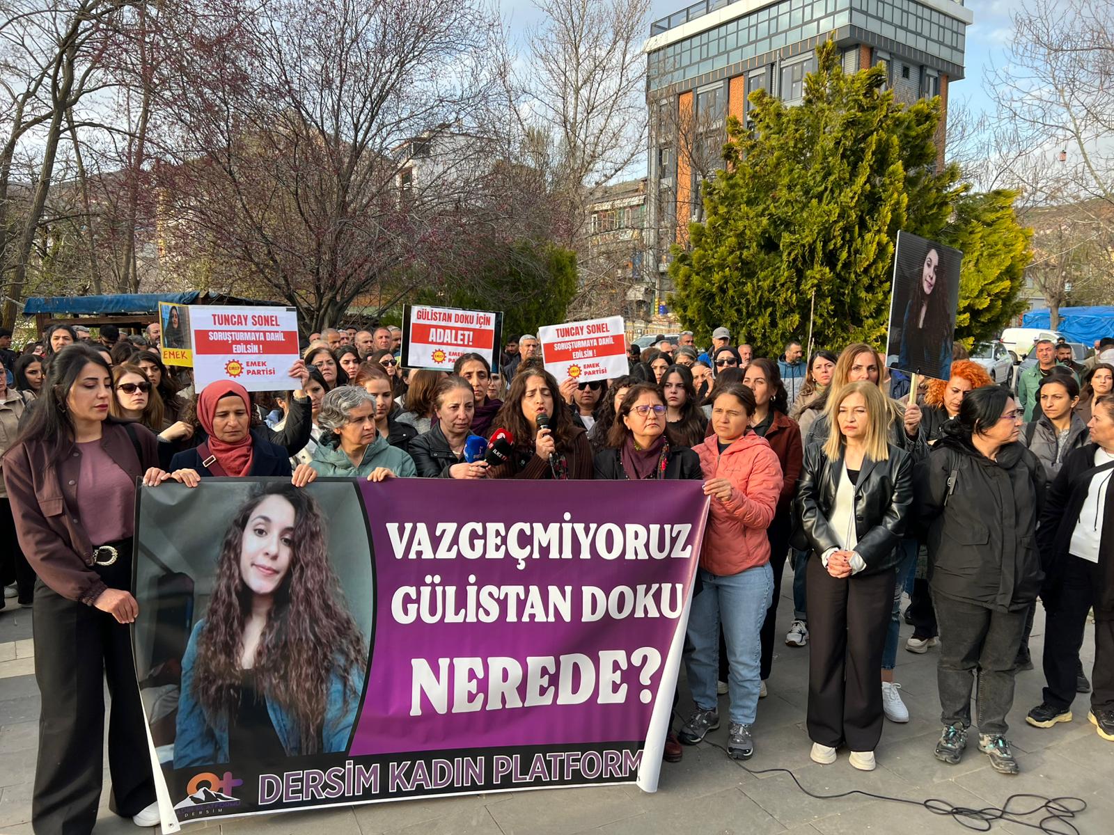 Bugüne kadar yaşananları hatırlatan Nurşat Yeşil, “Gülistan Doku’dan 2020 yılında kaldığı yurttan ayrıldıktan sonra haber alınamadı. Diyarbakır’da yaşayan ailesi, Gülistan’ın kaybolduğu gün Dêrsim’e gelerek güvenlik güçlerine ihbarda bulundu. Ailenin ihbarı üzerine arama çalışmaları başlatıldı. Yapılan araştırmalar sonucunda, Gülistan Doku’nun kaybolmadan kısa bir süre önce eski erkek arkadaşı Zainal Abakarov ile bir kafenin önünde tartıştığı, cep telefonunun en son Uzunçayır Baraj Gölü üzerindeki Sarısaltuk Viyadüğü’nde sinyal verdiği belirlendi. Sonrasında dönemin valisi Tuncay Sonel tarafından kesin bir dille Gülistan’ın intihar ettiği ve bedeninin bulunarak ailesine teslim edileceğine dair sözler verildi” şeklinde konuştu.