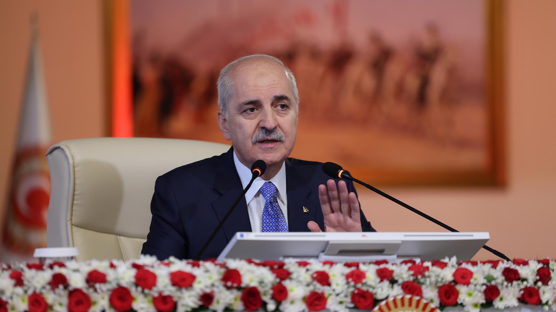 Meclis Başkanı Numan Kurtulmuş, CHP Genel Başkanı Özgür Özel’in ara seçim gündemiyle yaptığı açıklamalara yanıt verdi. Numan Kurtulmuş, konuşmasında Barış ve Demokratik Toplum Süreci’nin yasal adımlarına ilişkin de değerlendirmelerde bulundu.