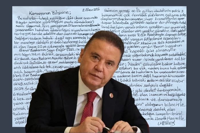 “Genel Başkanım Sayın Özgür Özel ile Adalet Bakanımız Sayın Akın Gürlek arasındaki söylemler siyasidir. Ancak Sayın Bakanın Muhittin Böcek’le ilgili iddia var demesine çok üzüldüm. 16-18 Mart mahkemeye çıktım. Üzerime atılı iddialara tek tek cevap verdim, çürüttüm. Alnım açık başım dik. Turgut Özal, Mesut Yılmaz, 1994 Anap Merkez İlçe Başkanı, 18 Nisan 1999 Konyaaltı Belediye Başkanı, 2004-2009 CHP Deniz Baykal, 2014 Sayın Kılıçdaroğlu, 2019 Millet İttifakı Sayın Kılıçdaroğlu, Sayın Meral Akşener 2024. Sayın Genel Başkanım Özgür Özel 6 defa aday oldum; 6 mazbata aldım. Allah’ıma şükür hiç kaybetmedim.